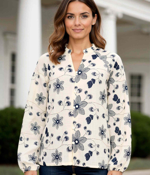 OFELIA FLORA SKJORTE I CREME OG MARINEBLÅ
