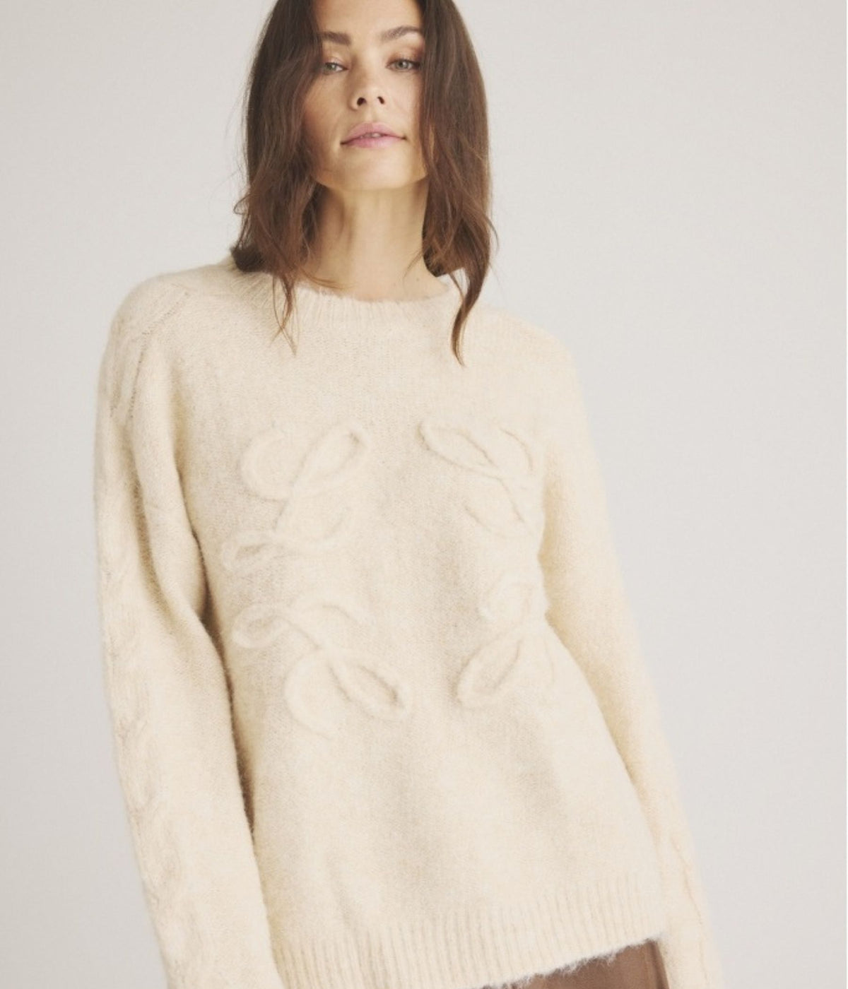 med kabelstrik ned langs ærmet.